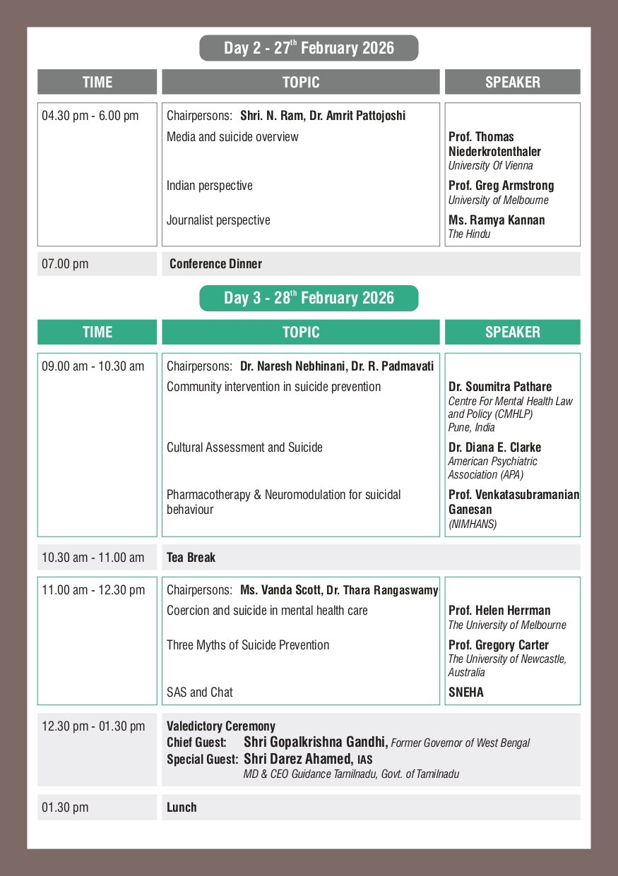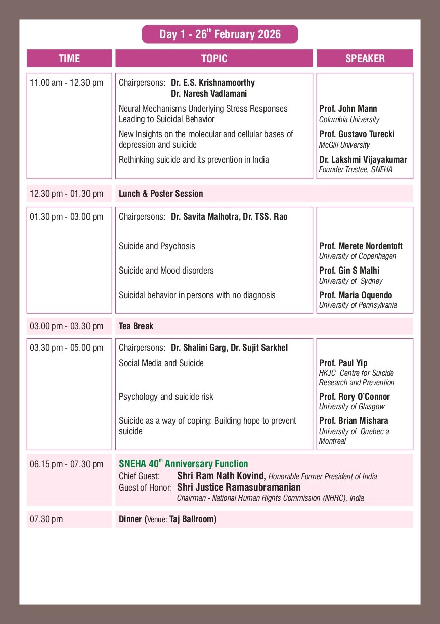 SNEHA Suicide Update 2026